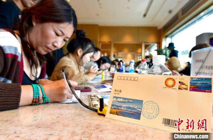 圖為游客在購(gòu)買(mǎi)《美麗中國(guó)(四)》郵票、首日封、紀(jì)念封等產(chǎn)品后,現(xiàn)場(chǎng)填寫(xiě)。李林 攝