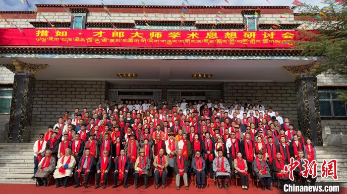 圖為參與藏醫(yī)藥學家措如·才郎大師學術思想研討會的藏醫(yī)藥專家學者合影留念。謝牧 攝