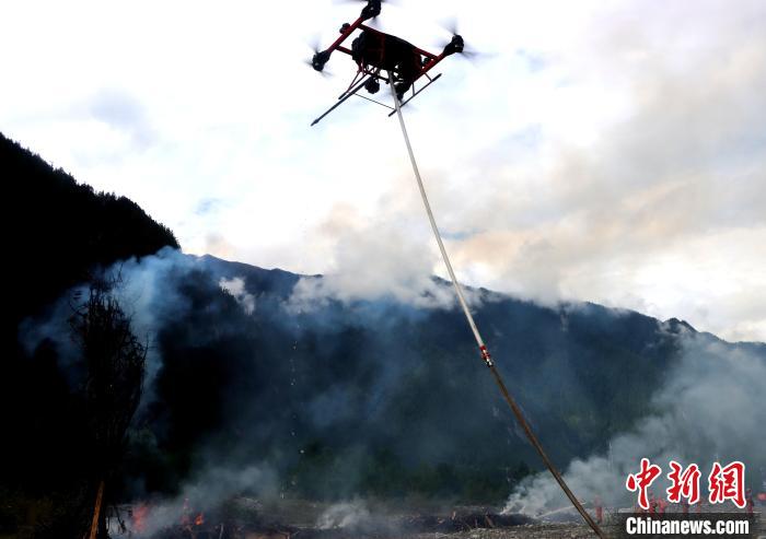 圖為滅火無人機(jī)實(shí)施滅火。費(fèi)賢浩 攝