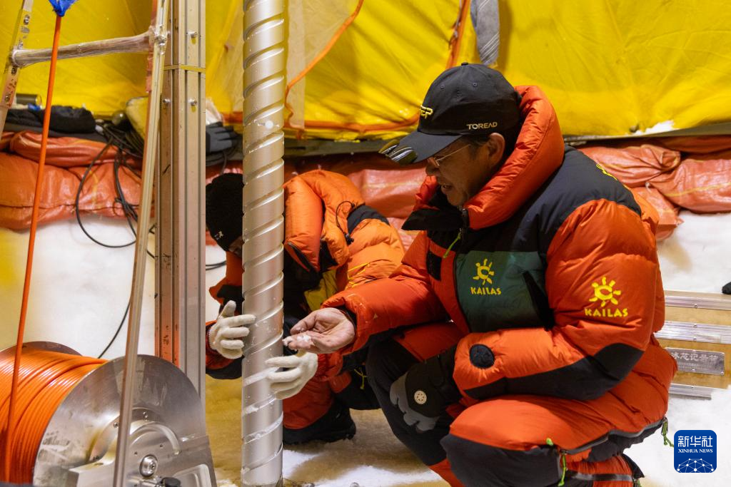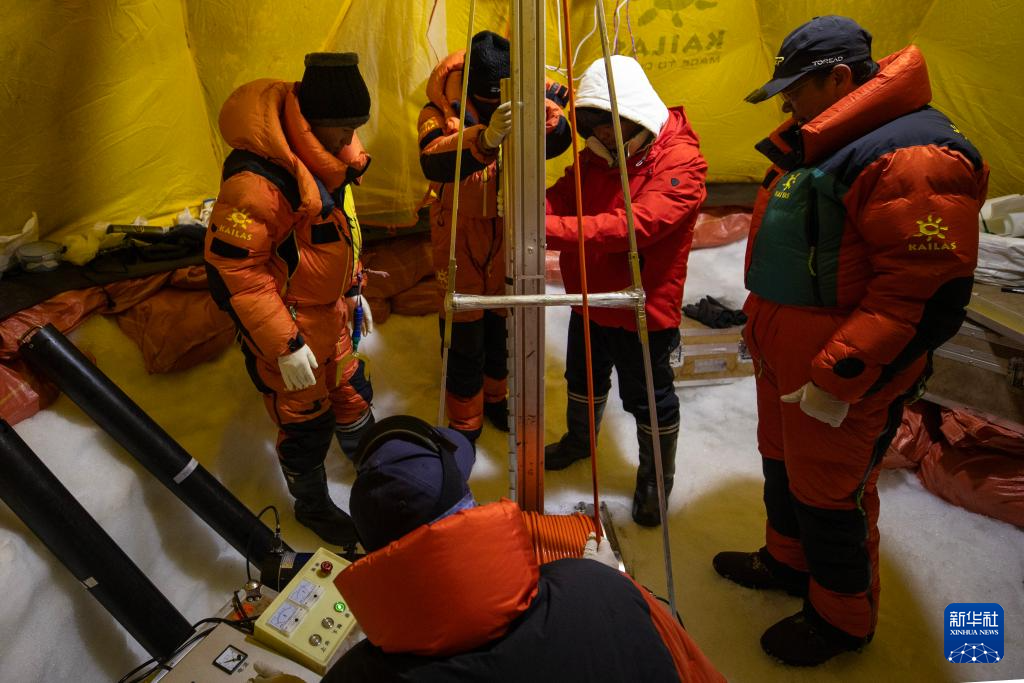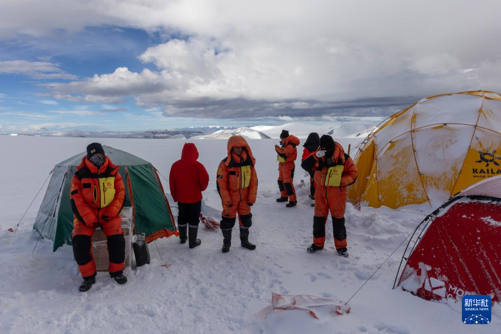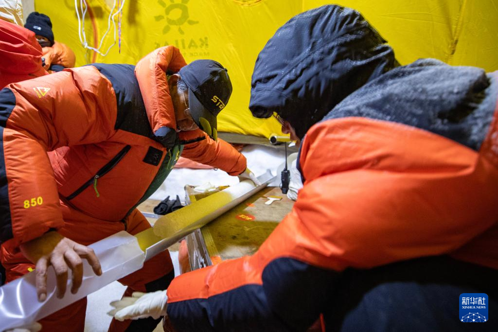 9月11日晚,由中國科學(xué)院青藏高原研究所副所長徐柏青研究員帶領(lǐng)的科考團(tuán)隊(duì)在普若崗日冰原頂部海拔6100米的“Dome.C”點(diǎn)開機(jī)鉆取冰芯。