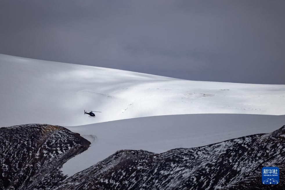 9月9日,直升機(jī)將科考物資從海拔5400米的第二次青藏科考普若崗日冰原大本營運(yùn)往海拔6100米的“Dome.C”點(diǎn)。新華社記者 姜帆 攝
