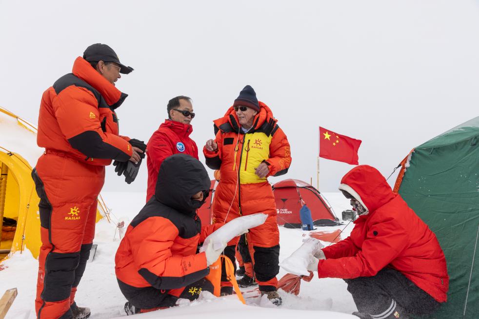 湯普森時(shí)刻關(guān)注著本次冰芯鉆取進(jìn)展。9月7日,湯普森和姚檀棟一道抵達(dá)普若崗日冰原6號(hào)冰川上的冰穹A作業(yè)點(diǎn)。這里,正是他們24年前鉆取普若崗日冰原第一個(gè)冰芯的地方。