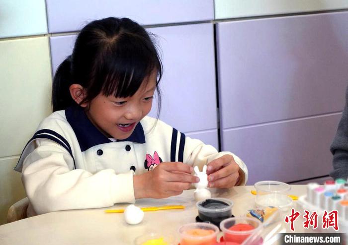 圖為兒童捏月兔。拉巴卓瑪 攝