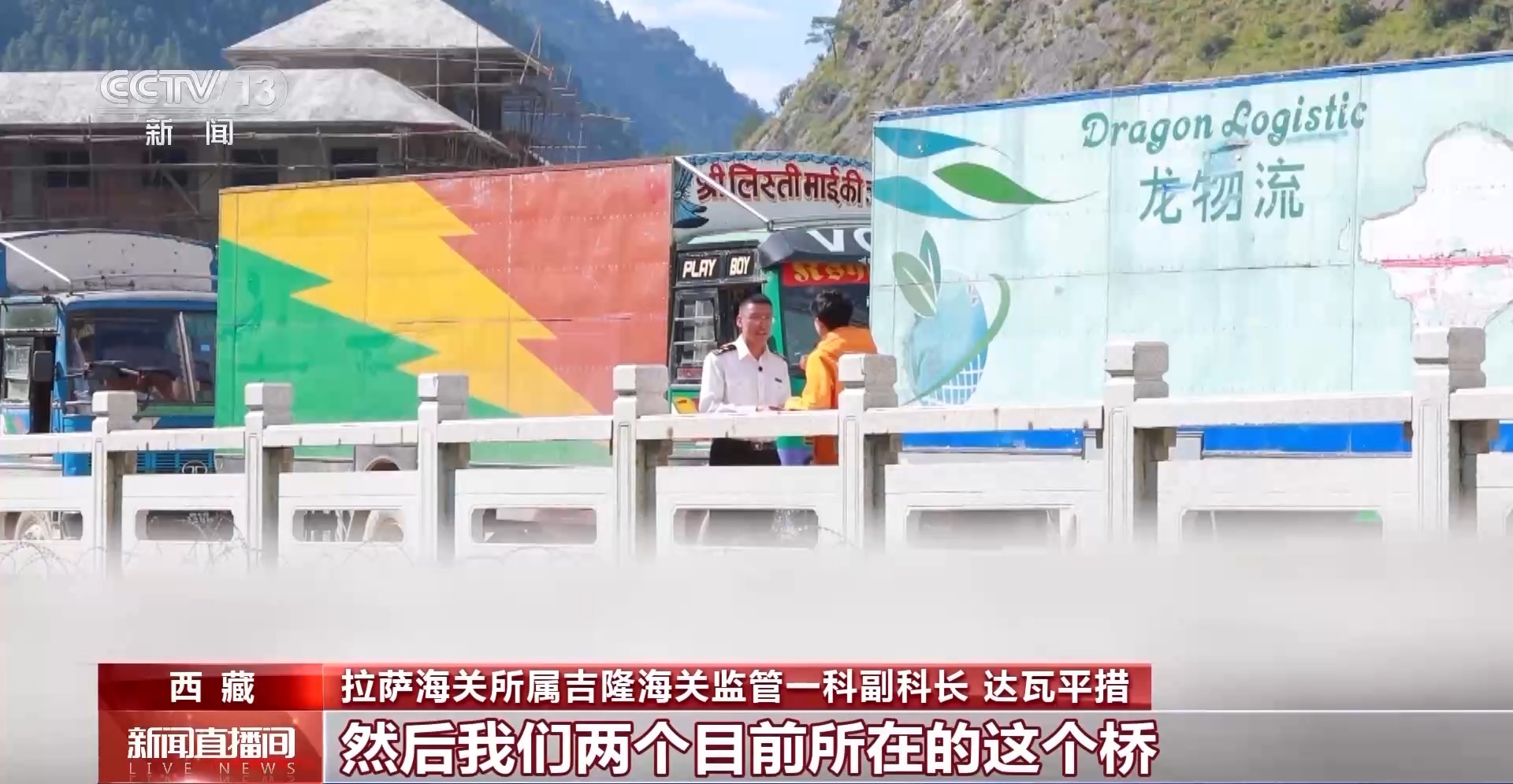 拉薩海關所屬吉隆海關監(jiān)管一科副科長 達瓦平措:我們所在的是第四代熱索橋。2015年尼泊爾“4.25地震”,吉隆口岸也是受災比較嚴重,然后在第三代的原址基礎上建了第四代橋。對我們?nèi)藛T往來、貿(mào)易往來發(fā)揮了重要作用。