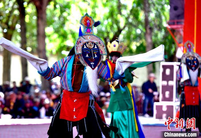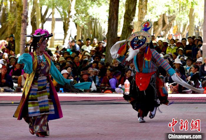 10月7日,西藏自治區(qū)日喀則市扎什倫布寺內(nèi)上演傳統(tǒng)八大藏戲之一《諾桑王子》,吸引僧俗民眾觀看。藏戲集說唱、表演、歌舞、文學(xué)于一體,有著600多年歷史,被譽(yù)為藏文化的“活化石”。中新社記者 李林 攝
