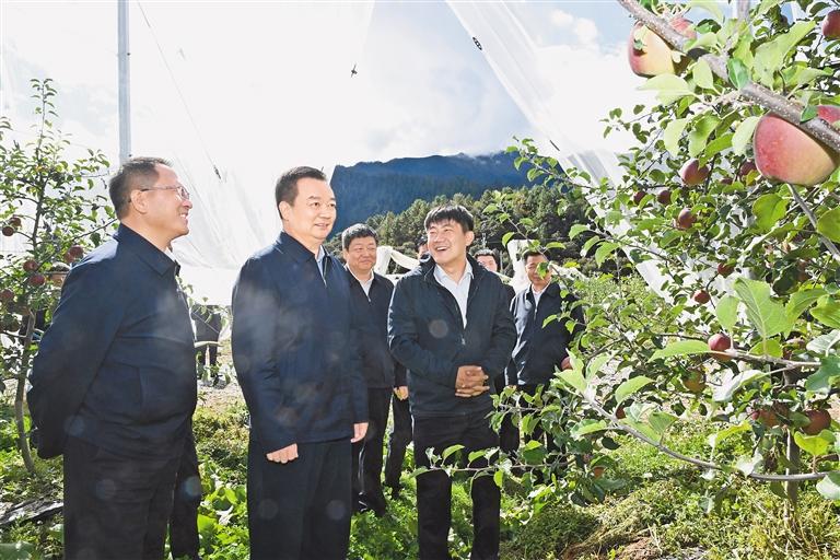 在巴宜區(qū)百巴鎮(zhèn)百巴村松贊帳篷營地、增巴村煙臺大山果業(yè)開發(fā)有限公司,王君正詳細了解了鄉(xiāng)村文旅融合、生態(tài)產業(yè)發(fā)展等情況。他指出,要加快推動文化旅游產業(yè)發(fā)展,堅持以文塑旅、以旅彰文,因地制宜探索新業(yè)態(tài)、新模式,培育品牌,惠及群眾,擴大影響,形成合力。堅持在保護中發(fā)展、在發(fā)展中保護,統(tǒng)籌生態(tài)修復和生態(tài)惠民,著力加強交通等基礎設施建設,賦能鄉(xiāng)村全面振興。堅定不移把培育產業(yè)、發(fā)展產業(yè)、壯大產業(yè)擺在重要位置,立足特色優(yōu)勢資源,加強農牧業(yè)技術推廣應用,加快地方特色品種選育和良種繁育推廣,加大典型宣傳力度,發(fā)揮示范引領,促進鄉(xiāng)村產業(yè)振興。完善利益聯結機制,持續(xù)發(fā)展壯大村集體經濟和實體產業(yè)項目,推動農業(yè)增效益、農民增收入、農村增活力,實現各民族共同發(fā)展、共同富裕。