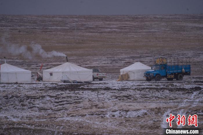 10月23日,西藏自治區(qū)那曲市安多縣多瑪鄉(xiāng)牧民在雪中放牧。當(dāng)日,一場(chǎng)雪將藏北草原裝扮得如詩(shī)如畫。牧民們?cè)谶@銀裝素裹的天地間,開始了雪中放牧的生活。牛羊在雪地中悠閑覓食,牧民駕駛著摩托車,在雪中放牧,形成了一幅動(dòng)人的風(fēng)景畫。圖為牧民在草原上搭建的帳篷。中新社記者 貢嘎來(lái)松 攝