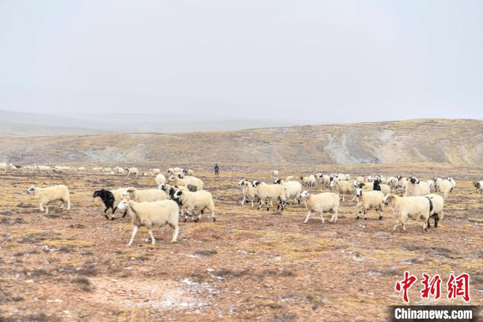 10月23日,西藏自治區(qū)那曲市安多縣多瑪鄉(xiāng)牧民在雪中放牧。當(dāng)日,一場(chǎng)雪將藏北草原裝扮得如詩(shī)如畫。牧民們?cè)谶@銀裝素裹的天地間,開始了雪中放牧的生活。牛羊在雪地中悠閑覓食,牧民駕駛著摩托車,在雪中放牧,形成了一幅動(dòng)人的風(fēng)景畫。圖為羊群在草原上覓食。中新社記者 貢嘎來(lái)松 攝