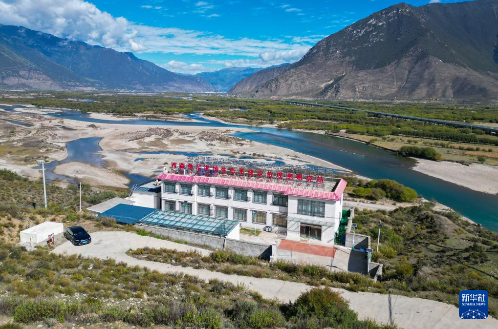 這是在林芝雅尼國家濕地公園尼洋河畔拍攝的生態(tài)監(jiān)測系統(10月24日攝,無人機照片)。新華社記者 劉天宇 攝
