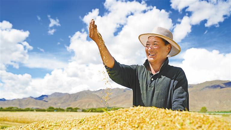 同樣的“豐”景,在日喀則市江孜縣江熱鄉(xiāng)江熱村也在上演,“我家有52畝地,留足口糧后光靠地的收入一年有三萬元左右,與去年相比,今年的產(chǎn)量還要高一些。”江熱村村民格桑說,“過去種青稞,大部分是為了自給自足留足口糧,現(xiàn)在種出來的青稞,能夠制成青稞酒、青稞餅干、青稞酸奶等產(chǎn)品,產(chǎn)品和銷售渠道寬了,農(nóng)民們的收入自然也就高了。”