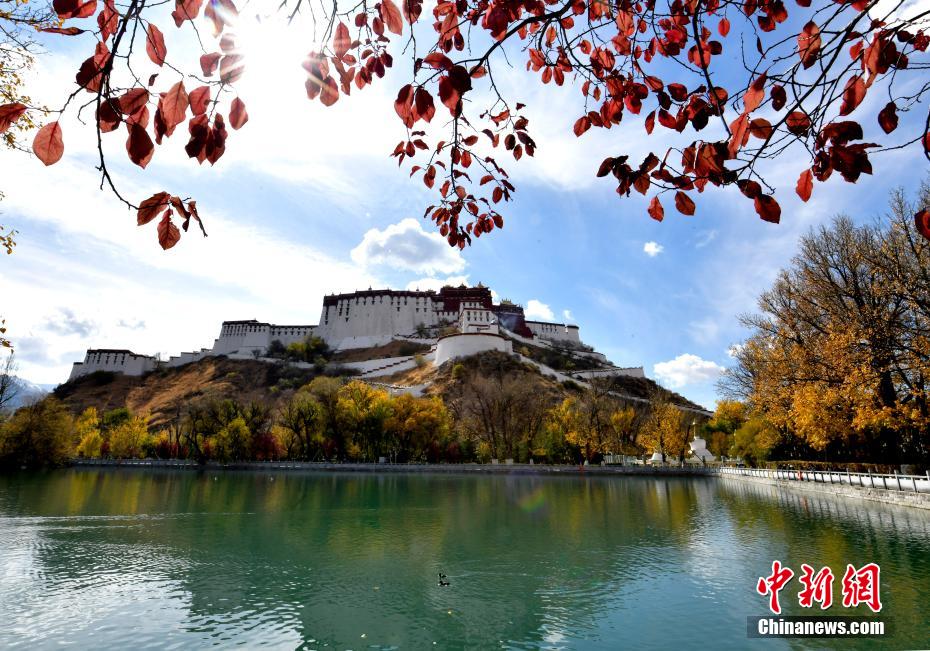 11月6日,位于西藏拉薩的世界文化遺產(chǎn)布達拉宮在周圍紅黃樹葉的映襯下色彩斑斕。中新社記者 李林 攝