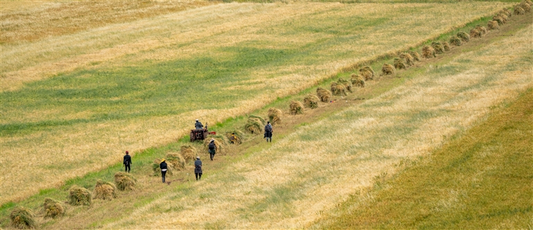林周縣村民在農(nóng)田里干農(nóng)活。林周縣融媒體供圖