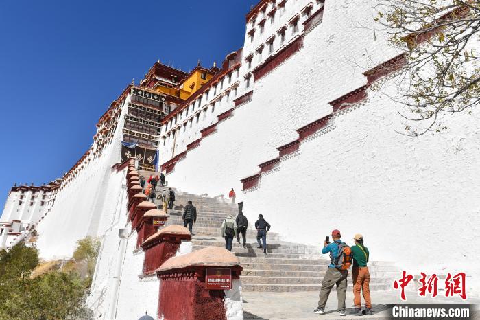 近日,西藏布達(dá)拉宮完成粉刷,呈現(xiàn)出別樣的美。粉刷后的宮墻在陽光映照下,與藍(lán)天白云相襯,顯得莊嚴(yán)肅穆。布達(dá)拉宮的粉刷,不僅是為了讓其外觀更加美觀,更重要的是能對墻體建筑起到保護(hù)作用,增強(qiáng)其防雨功能。按照慣例,布達(dá)拉宮每年藏歷九月左右開始粉刷,并且要在藏歷九月二十二日“降神節(jié)”之前完成,期間有眾多民眾,游客積極參與。布達(dá)拉宮作為世界文化遺產(chǎn),是眾多進(jìn)藏游客必去的“打卡點(diǎn)”。圖為11月8日,游客沿著臺階步行進(jìn)入布達(dá)拉宮。中新社記者 貢確 攝