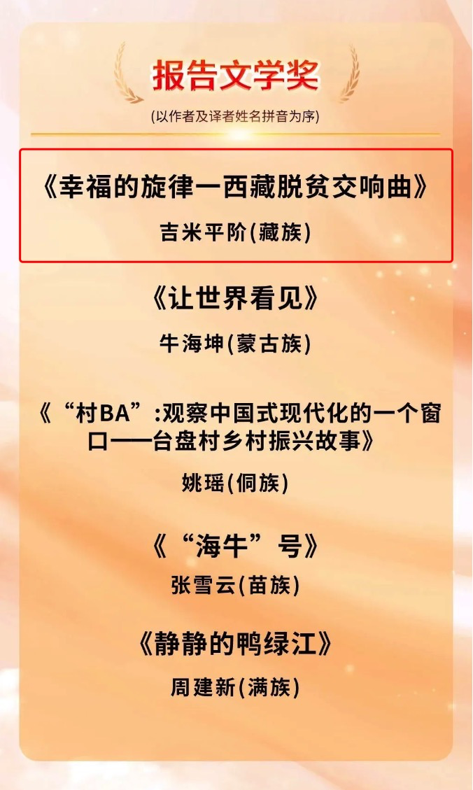 圖為第十三屆駿馬獎長篇小說獎和報告文學(xué)獎獲獎名單。(圖片來源于道中華微信公眾號)