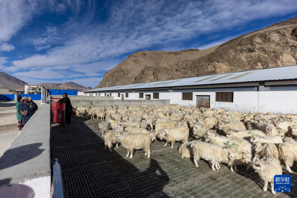 日土縣白絨山羊原種場的職工在照看良種羊(11月16日攝)。新華社記者 姜帆 攝