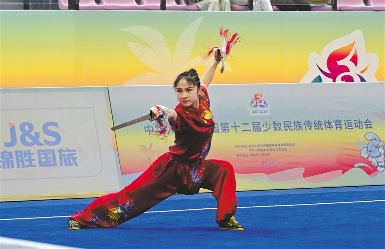 在民族武術項目比賽中,西藏選手趙爽獲得女子傳統(tǒng)雙器械一等獎,閻小樂獲得女子傳統(tǒng)單器械二等獎,許其格獲得女子傳統(tǒng)軟器械三等獎。