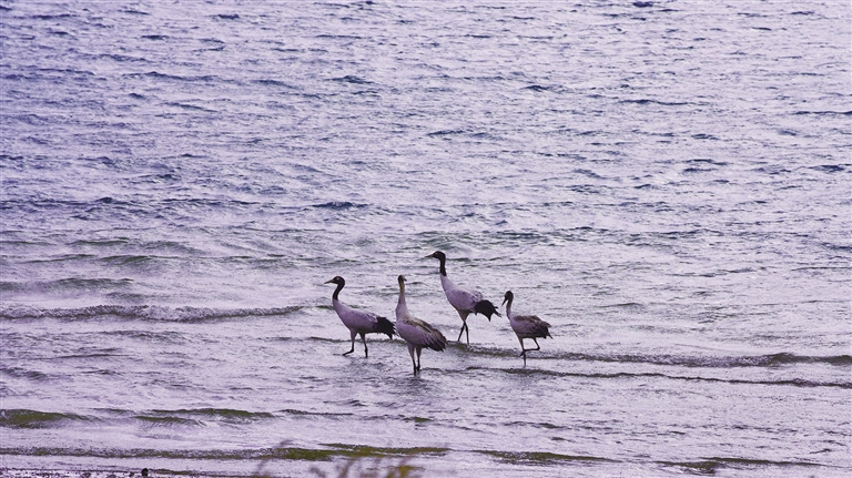 記者了解到,近年來隨著西藏高度重視黑頸鶴等野生動物的保護(hù)工作,通過建立黑頸鶴國家級自然保護(hù)區(qū)、實施生態(tài)修復(fù)工程,有效改善了黑頸鶴的生存環(huán)境。據(jù)統(tǒng)計,西藏境內(nèi)的黑頸鶴數(shù)量由不到3000只增加到1萬多只,種群數(shù)量也在持續(xù)增長。(圖由洛克 益西曲珍提供)