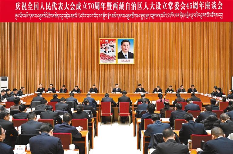 11月25日,西藏自治區(qū)召開慶祝全國人民代表大會成立70周年暨西藏自治區(qū)人大設(shè)立常委會45周年座談會。自治區(qū)黨委書記王君正出席并講話。 本報記者 李洲 攝
