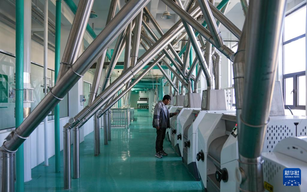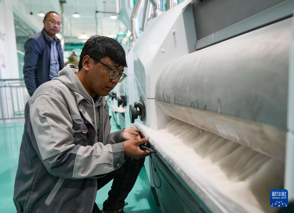 西藏稞研農(nóng)業(yè)科技有限公司工作人員巡視青稞谷物專用生產(chǎn)線(10月16日攝)。新華社記者 晉美多吉 攝