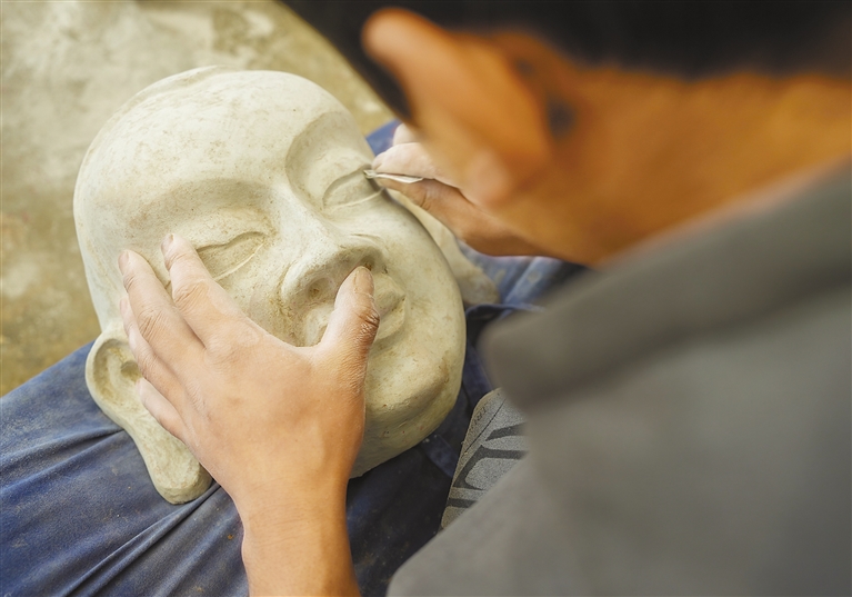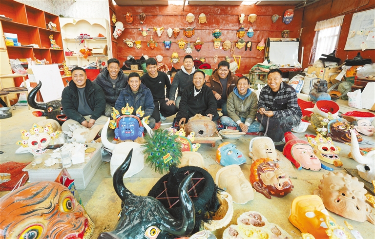 在拉薩市達孜區(qū)雪鄉(xiāng)民間傳統(tǒng)手工藝農(nóng)民專業(yè)合作社的小院里,拉薩布制面具制作技藝西藏自治區(qū)級非遺傳承人西洛和徒弟們忙得熱火朝天,他們正在制作面具。面具制作工序繁雜,制作一個面具包括雕刻、分層、風干和噴漆等十幾道工序。2012年,在政府的扶持下,西洛創(chuàng)辦了傳統(tǒng)手工藝合作社,主要制作和銷售藏戲面具。西洛制作的面具造型精美,廣泛運用于藏戲表演中?!懊婢叩膬r格從幾百元到幾萬元不等,大部分訂單來自西藏的各大藏戲團?!蔽髀逭f。近年來,合作社不斷吸納當?shù)厝罕妼W(xué)習(xí)面具制作技藝,不僅為當?shù)厝罕娞峁┚蜆I(yè)機會,也進一步助力非物質(zhì)文化遺產(chǎn)的保護和發(fā)展。