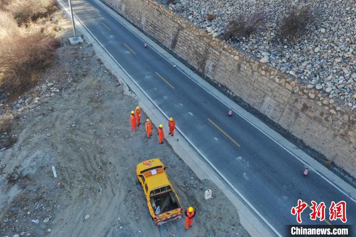 12月16日,西藏自治區(qū)林芝公路事業(yè)發(fā)展和應(yīng)急保障中心(工布江達(dá)養(yǎng)護(hù)段)道路養(yǎng)護(hù)工人及時(shí)清除川藏公路上的落石,保障道路暢通。該養(yǎng)護(hù)段擔(dān)負(fù)著川藏公路沿線工布江達(dá)縣路段的養(yǎng)護(hù)管理、應(yīng)急搶險(xiǎn)等工作,包括路面修補(bǔ)、清理邊溝、維護(hù)交通安全設(shè)施等日常養(yǎng)護(hù)工作。圖為道路養(yǎng)護(hù)工人在公路上巡護(hù)。(無人機(jī)照片)中新社記者 貢嘎來松 攝