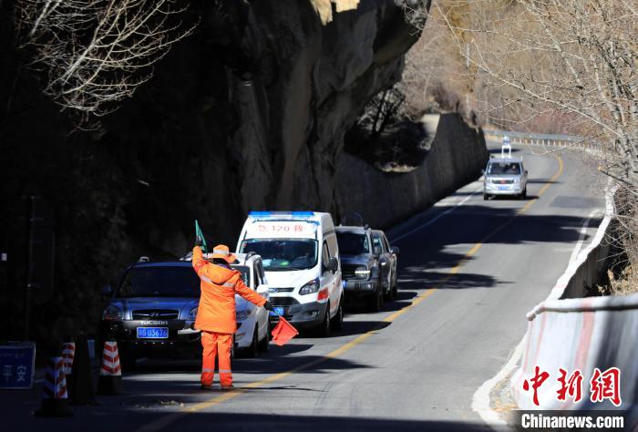 12月16日,西藏自治區(qū)林芝公路事業(yè)發(fā)展和應(yīng)急保障中心(工布江達(dá)養(yǎng)護(hù)段)道路養(yǎng)護(hù)工人及時(shí)清除川藏公路上的落石,保障道路暢通。該養(yǎng)護(hù)段擔(dān)負(fù)著川藏公路沿線工布江達(dá)縣路段的養(yǎng)護(hù)管理、應(yīng)急搶險(xiǎn)等工作,包括路面修補(bǔ)、清理邊溝、維護(hù)交通安全設(shè)施等日常養(yǎng)護(hù)工作。圖為養(yǎng)護(hù)工人引導(dǎo)往來車輛。中新社記者 王磊 攝