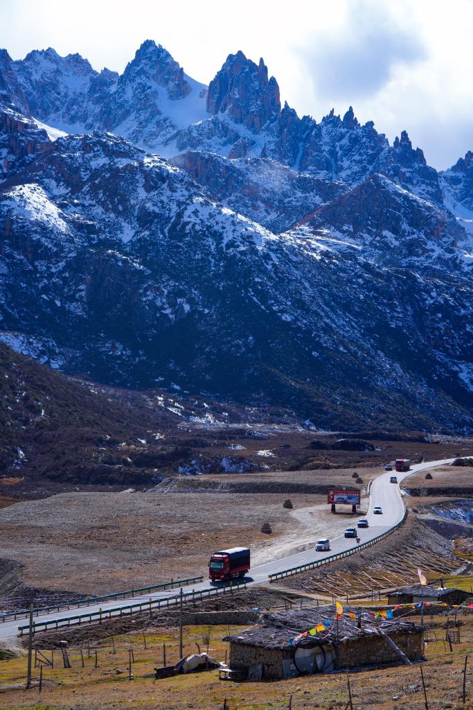 2024年11月1日,在四川省甘孜藏族自治州德格縣,車輛穿過雀兒山隧道后行駛在317國道上。