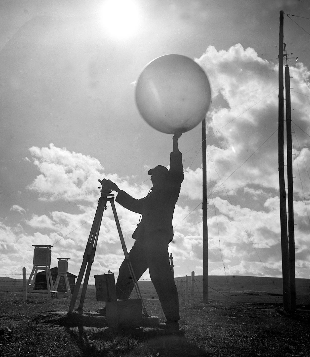 1964年,五道梁氣象服務(wù)站的工作人員放測風(fēng)氣球。在昆侖山里工作的氣象工作者,長期堅(jiān)守工作崗位,為青藏公路安全運(yùn)輸提供了寶貴的氣象資料。