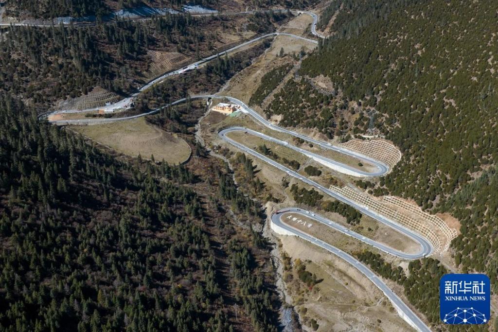 2024年11月1日在四川省甘孜藏族自治州德格縣拍攝的國道317公路雀兒山段老路(無人機(jī)照片)。新華社記者 王曦 攝