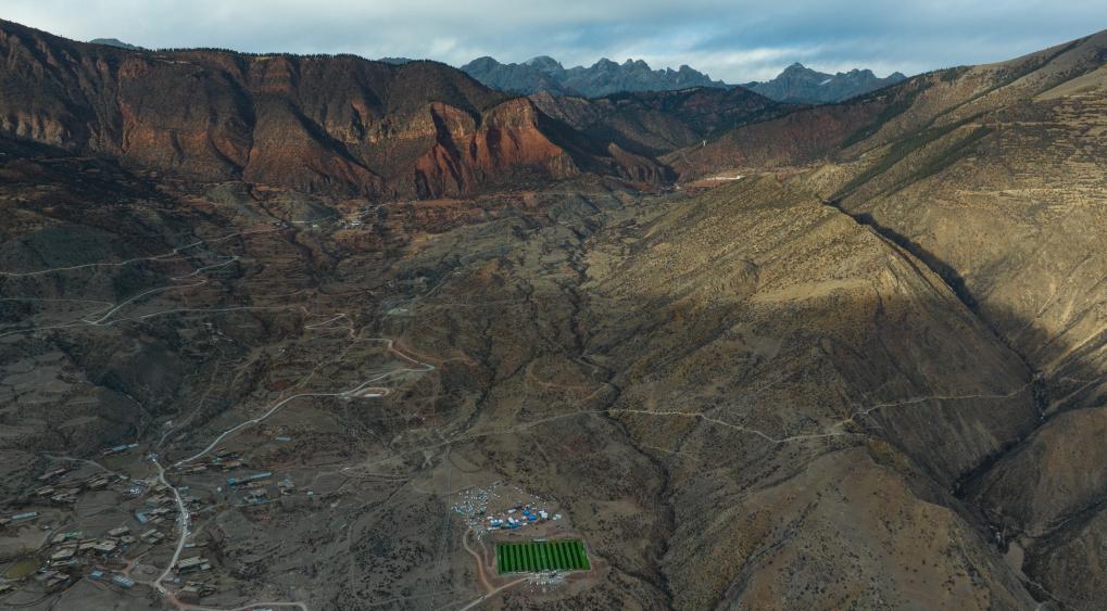 馬利鎮(zhèn)“云中球場”坐落于紅褐色的山谷中(1月2日攝,無人機照片)。新華社記者 丁增尼達 攝