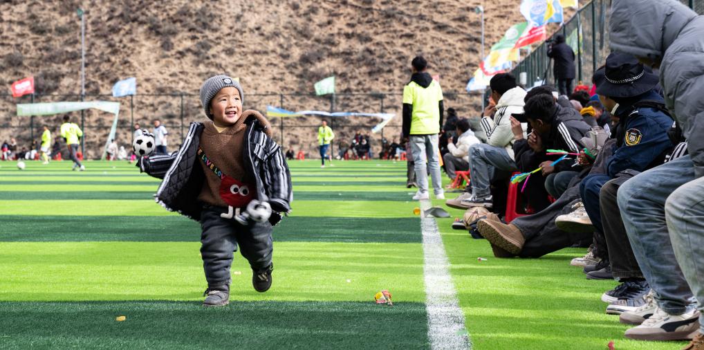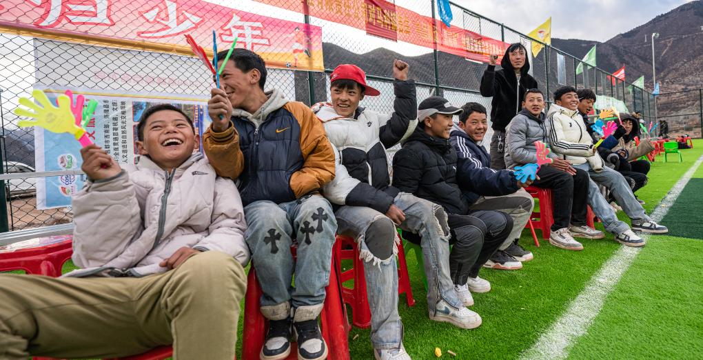 在馬利鎮(zhèn)“云中球場”,小球迷們在加油助威(1月2日攝)。新華社記者 丁增尼達 攝