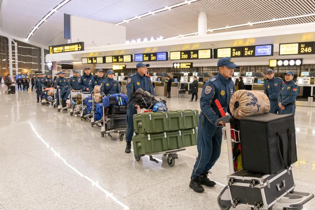 重慶市藍(lán)天救援隊(duì)一梯隊(duì)共出動(dòng)12人,攜帶衛(wèi)星電話、衛(wèi)星地面站、生命探測儀等設(shè)備,于1月9日乘坐航班從重慶前往西藏進(jìn)行地震救援行動(dòng)。