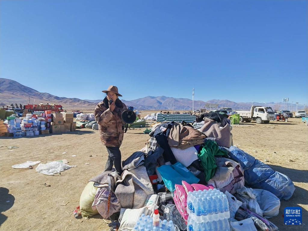 9日上午11時(shí)許,在西藏日喀則市拉孜縣拉孜鎮(zhèn)措布村村委會(huì)門(mén)口,52歲的村黨支部書(shū)記達(dá)娃正在調(diào)度抗震物資。