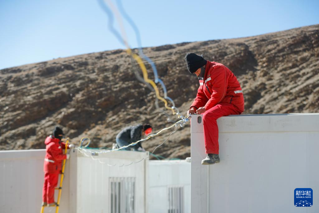1月10日,在定日縣長所鄉(xiāng)古榮村,工人在為板房搭設(shè)電路。新華社記者 沈伯韓 攝