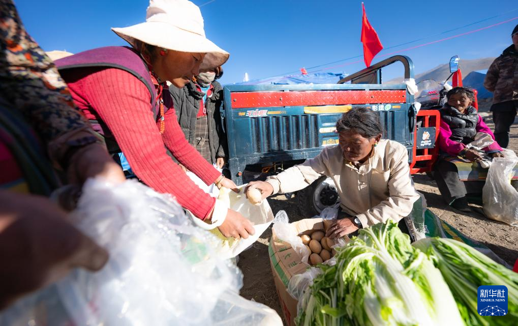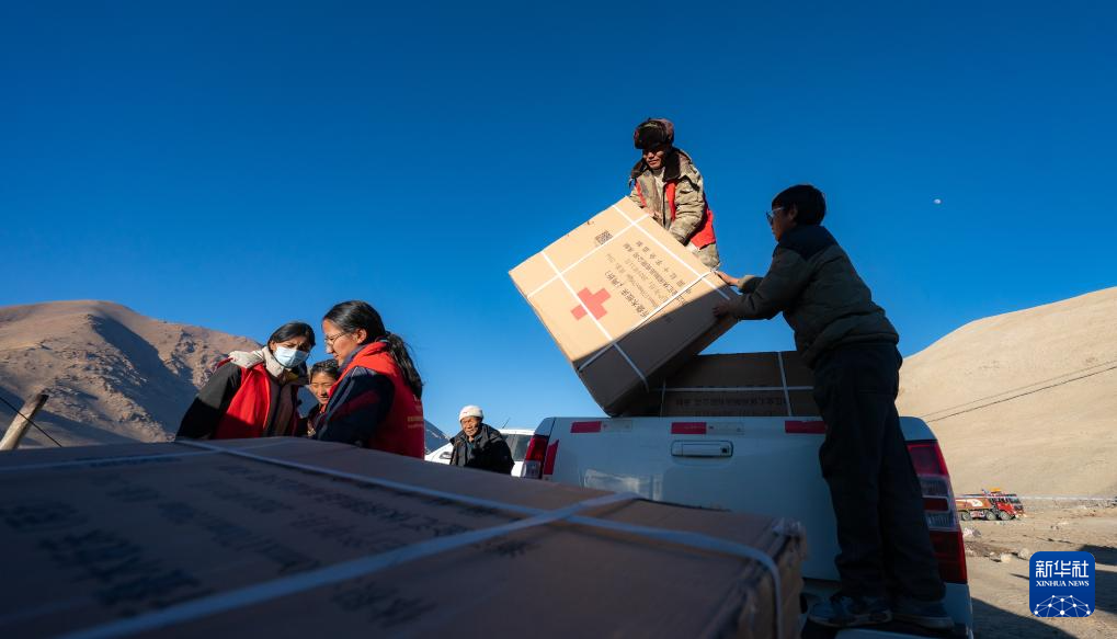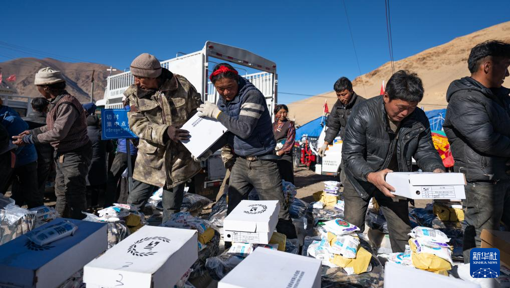 1月10日,在定結(jié)縣郭加鄉(xiāng)切村安置點,群眾分配救災(zāi)物資。新華社記者 丁增尼達(dá) 攝
