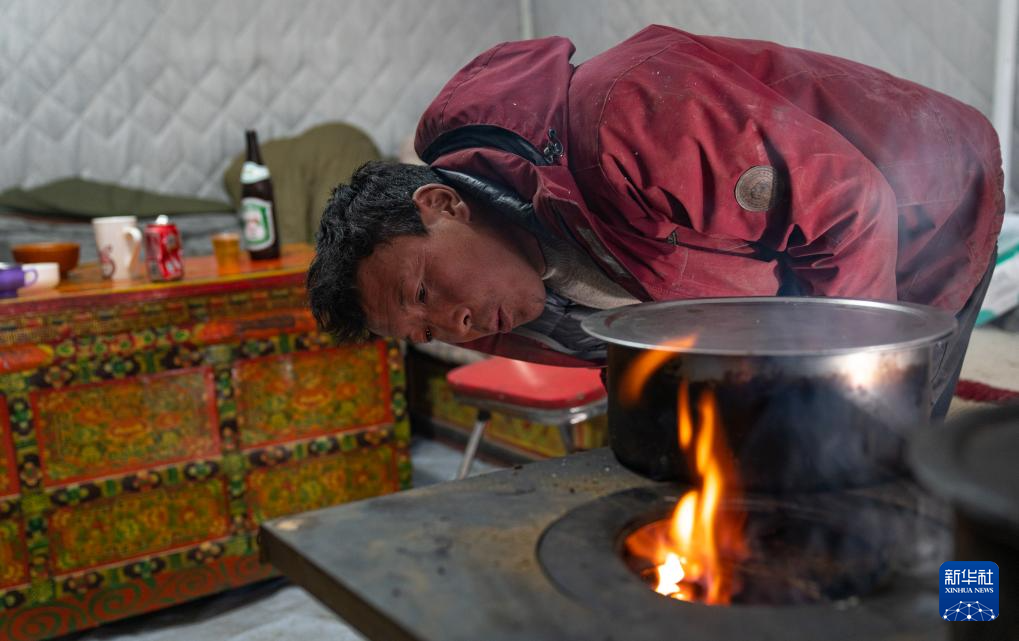 1月10日,在定結(jié)縣郭加鄉(xiāng)切村安置點,群眾在救災(zāi)帳篷里生火。新華社記者 丁增尼達(dá) 攝