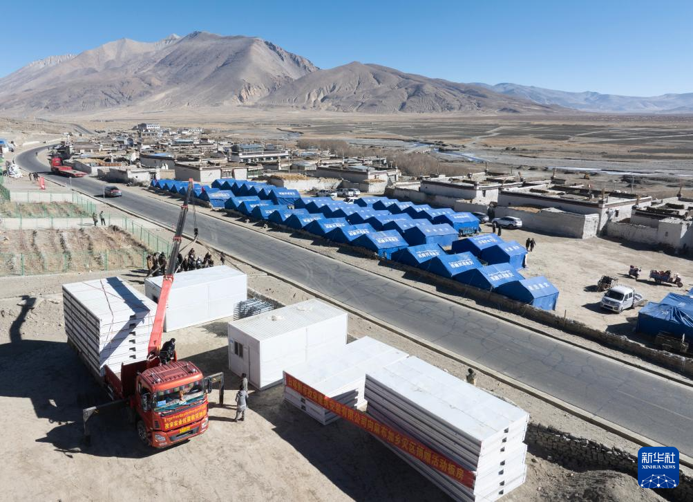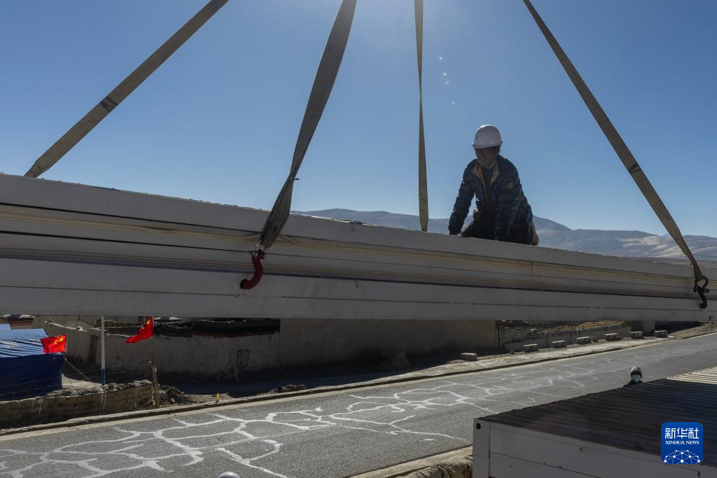 當(dāng)日,在薩迦縣麻布加鄉(xiāng)白拉村,工程人員與有相應(yīng)技術(shù)的村民一起建設(shè)活動(dòng)板房。據(jù)了解,這是薩迦縣地震災(zāi)區(qū)開建的第一批板房。