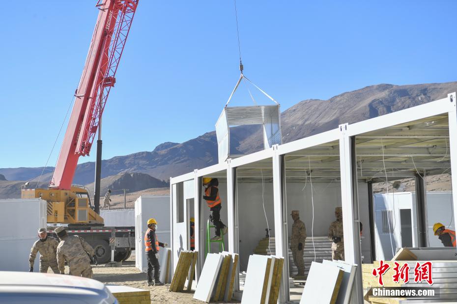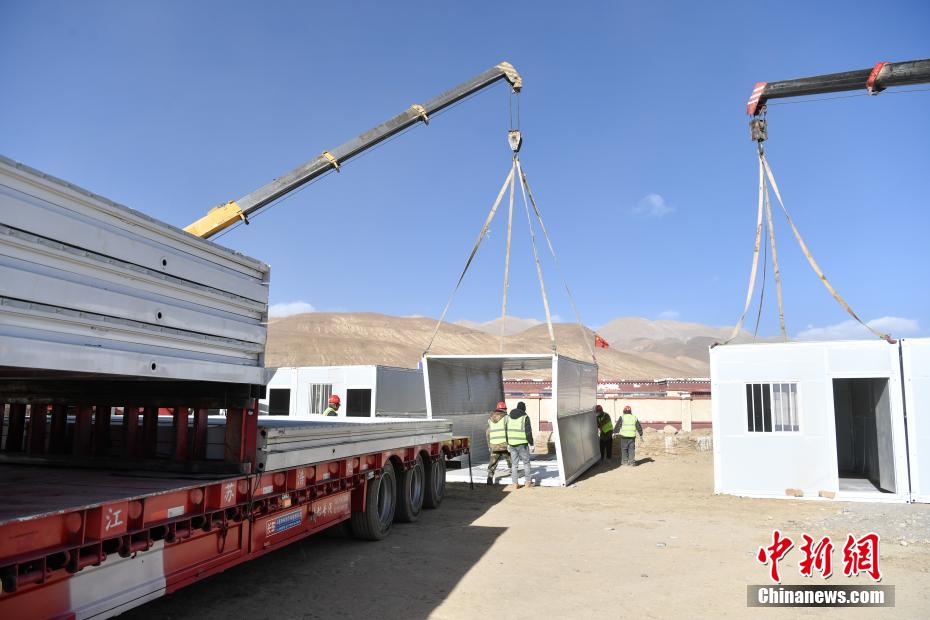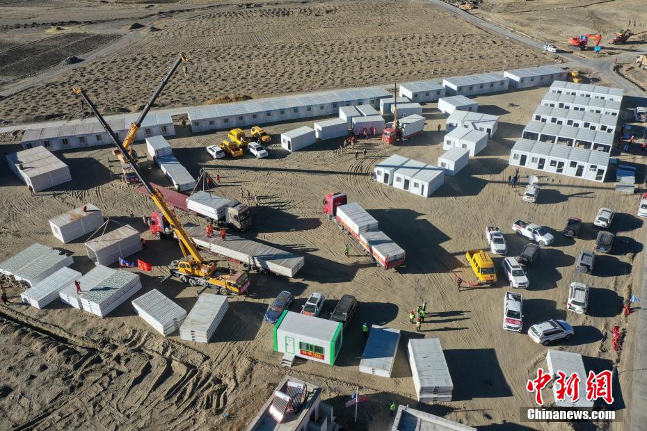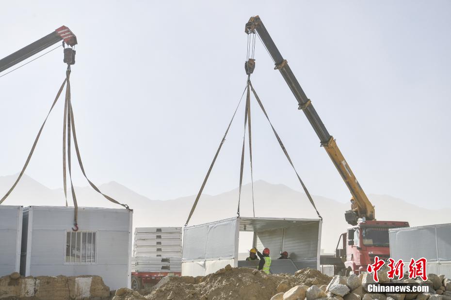 1月7日9時5分,西藏自治區(qū)日喀則市定日縣發(fā)生6.8級地震,震源深度10公里。災(zāi)情就是命令,當(dāng)?shù)卣推髽I(yè)迅速行動,目前災(zāi)區(qū)多個鄉(xiāng)村都在加緊進(jìn)行保溫板房建設(shè),只為讓受災(zāi)民眾早日擁有“安心巢”。據(jù)了解,每間板房有18平方米,可容納4到5人,板房設(shè)有折疊床、桌子、爐子等,并保障民眾用電需求,讓他們更好地度過冬天。圖為1月10日,西藏日喀則市定日縣長所鄉(xiāng)森嘎村保溫板房建設(shè)現(xiàn)場。中新社記者 貢嘎來松 攝