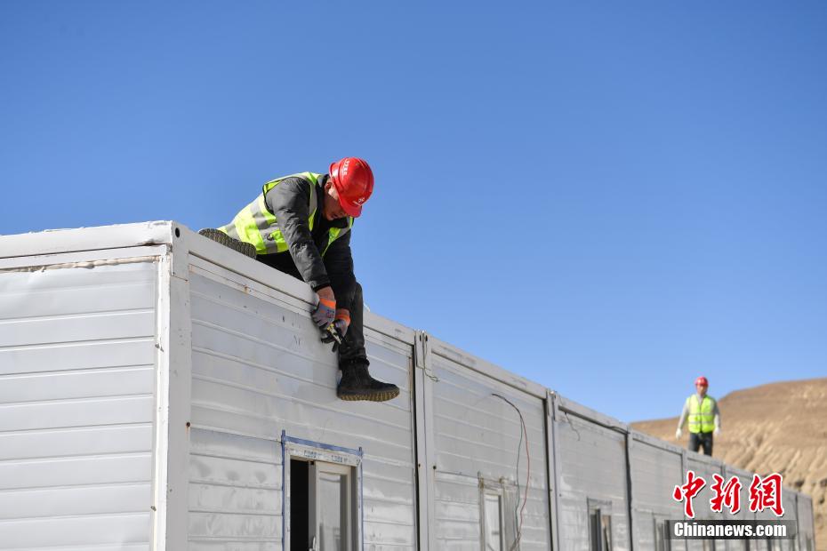 1月7日9時5分,西藏自治區(qū)日喀則市定日縣發(fā)生6.8級地震,震源深度10公里。災(zāi)情就是命令,當(dāng)?shù)卣推髽I(yè)迅速行動,目前災(zāi)區(qū)多個鄉(xiāng)村都在加緊進(jìn)行保溫板房建設(shè),只為讓受災(zāi)民眾早日擁有“安心巢”。據(jù)了解,每間板房有18平方米,可容納4到5人,板房設(shè)有折疊床、桌子、爐子等,并保障民眾用電需求,讓他們更好地度過冬天。圖為1月9日,西藏日喀則市定日縣曲洛鄉(xiāng)措昂村安置點(diǎn),中國交建西藏指揮部抗震救災(zāi)前線工人在搭建保溫板房。中新社記者 貢嘎來松 攝