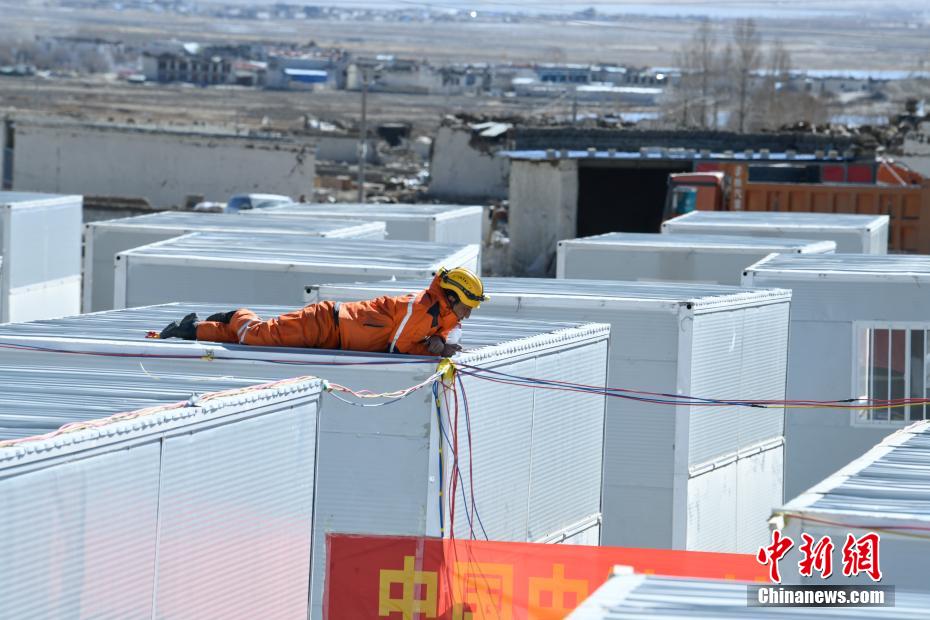 1月7日9時5分,西藏自治區(qū)日喀則市定日縣發(fā)生6.8級地震,震源深度10公里。災(zāi)情就是命令,當(dāng)?shù)卣推髽I(yè)迅速行動,目前災(zāi)區(qū)多個鄉(xiāng)村都在加緊進(jìn)行保溫板房建設(shè),只為讓受災(zāi)民眾早日擁有“安心巢”。據(jù)了解,每間板房有18平方米,可容納4到5人,板房設(shè)有折疊床、桌子、爐子等,并保障民眾用電需求,讓他們更好地度過冬天。圖為1月11日,西藏日喀則市定日縣長所鄉(xiāng)嘎旦村,工人在為板房搭設(shè)電路。中新社記者 貢嘎來松 攝