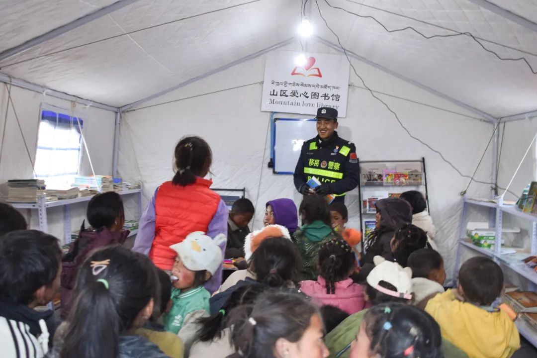 地震發(fā)生后,西藏邊檢總站日喀則邊境管理支隊(duì)救援民警不知疲倦地奔走在震中3個(gè)受損嚴(yán)重的村莊,了解震后群眾生產(chǎn)生活情況,協(xié)助解決面臨的各種困難問(wèn)題。面對(duì)240頂帳篷,230戶1200余名災(zāi)民,民警們組建了抗震救災(zāi)雜村、嘎布村和玉白村臨時(shí)警務(wù)室,配備警力30人,實(shí)行24小時(shí)勤務(wù)模式,主要承擔(dān)交通疏導(dǎo)、宣傳教育、隱患排查、秩序維持、輔導(dǎo)功課、協(xié)助地方開(kāi)展其他救援等任務(wù),同時(shí)設(shè)置常用藥箱,方便群眾用藥需求,被群眾親切地稱為“建在身邊的派出所”。