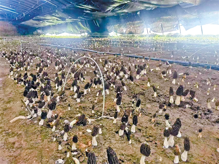 圖為大棚內的羊肚菌。本網(wǎng)記者 貢秋曲措 通訊員 梁俠 牛繼平 攝