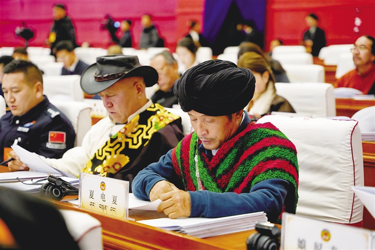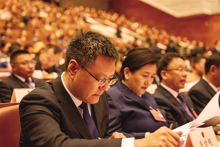與會(huì)人員認(rèn)真聆聽政府工作報(bào)告。