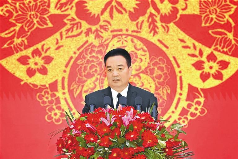 王君正在致辭中說,2024年是西藏經(jīng)濟社會發(fā)展歷程中不平凡的一年。自治區(qū)黨委團結(jié)帶領(lǐng)全區(qū)各族干部群眾,深入貫徹落實習近平總書記關(guān)于西藏工作的重要指示和新時代黨的治藏方略,緊緊圍繞“四件大事”落實,努力推動長治久安和高質(zhì)量發(fā)展取得新成效。牢固樹立總體國家安全觀,堅持警鐘長鳴、警惕常在,把維穩(wěn)工作做在日常、做到經(jīng)常、落實在基層,加快推進依法治藏,建設(shè)更高水平的法治西藏,確保社會大局持續(xù)和諧穩(wěn)定,長治久安的基礎(chǔ)更加牢固。完整準確全面貫徹新發(fā)展理念,落實“三個賦予一個有利于”總要求,傳統(tǒng)產(chǎn)業(yè)提質(zhì)增效,新興產(chǎn)業(yè)加快發(fā)展,營商環(huán)境持續(xù)優(yōu)化,努力推動經(jīng)濟社會高質(zhì)量發(fā)展,確保經(jīng)濟發(fā)展當前有活力、未來有潛力。(下轉(zhuǎn)第二版)(緊接第一版) 堅持以人民為中心的發(fā)展思想,持續(xù)改善各族群眾的生產(chǎn)生活條件,改進工作方式方法,采取針對性措施解決好群眾關(guān)心的醫(yī)療、教育、就業(yè)等實際問題,西藏班招生規(guī)模不斷擴大,全區(qū)城鄉(xiāng)面貌發(fā)生深刻變化,各族群眾的獲得感幸福感安全感持續(xù)增強。持之以恒推進全面從嚴治黨,堅決貫徹黨中央關(guān)于全面從嚴治黨的戰(zhàn)略部署,牢固樹立憑能力用干部、以實績論英雄的鮮明用人導向,努力建設(shè)一支忠誠干凈擔當?shù)母刹筷犖?,黨的戰(zhàn)斗力、凝聚力、領(lǐng)導力、號召力不斷增強。日喀則市定日縣地震發(fā)生后,自治區(qū)黨委認真貫徹落實習近平總書記重要指示精神和中共中央政治局常務(wù)委員會會議精神,按照黨中央、國務(wù)院決策部署,全區(qū)黨政軍警民齊心協(xié)力、協(xié)調(diào)聯(lián)動,廣大黨員干部勇于擔當、沖鋒在前,科學救治受傷群眾,全力搶修基礎(chǔ)設(shè)施,妥善安置受災群眾,確保了人民群眾生命財產(chǎn)安全,抗震救災工作取得階段性勝利。西藏各項事業(yè)的發(fā)展進步,是以習近平同志為核心的黨中央英明領(lǐng)導的結(jié)果,是習近平新時代中國特色社會主義思想科學指引的結(jié)果,是全區(qū)各族人民努力奮斗的結(jié)果。