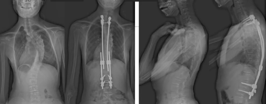 白瑪今年10歲,正在讀小學(xué)。媽媽發(fā)現(xiàn),白瑪經(jīng)常歪著肩膀,在反復(fù)提醒“站直了,別歪著”后,情況也沒(méi)有改善。近半年來(lái),白瑪?shù)挠覀?cè)肩胛骨逐漸向后凸出。到醫(yī)院檢查后發(fā)現(xiàn),白瑪?shù)男刈荡嬖诿黠@的側(cè)凸畸形,是早發(fā)型特發(fā)性脊柱側(cè)凸。由于側(cè)凸較為嚴(yán)重,已經(jīng)失去了支具治療的機(jī)會(huì)。小白瑪才10歲,隨著身體的不斷成長(zhǎng),她的脊柱會(huì)越來(lái)越彎,肩膀會(huì)越來(lái)傾斜。這不僅影響體態(tài)和外觀,也可能限制心、肺等內(nèi)臟器官的發(fā)育,導(dǎo)致心肺功能下降、肢體活動(dòng)不便,出現(xiàn)癱瘓,甚至死亡。對(duì)于白瑪這種情況,只能利用手術(shù)治療來(lái)矯正脊柱、阻止骨骼畸形進(jìn)展。