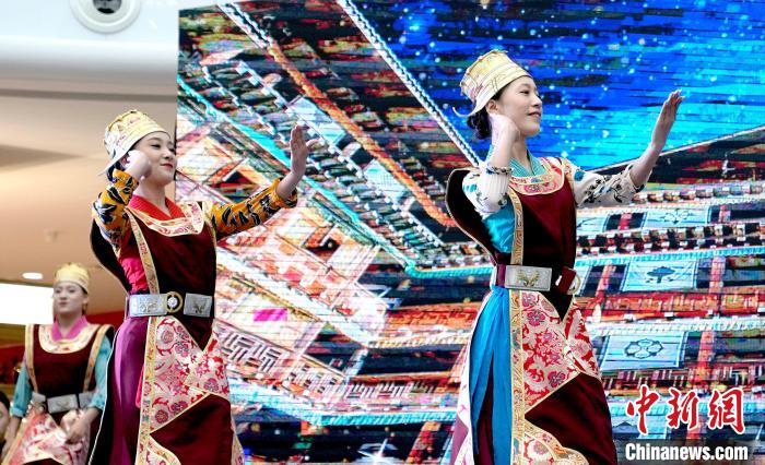 圖為西藏林芝第二十二屆桃花旅游文化節(jié)推介會(huì)(拉薩站)現(xiàn)場(chǎng)的文藝演出。李林 攝