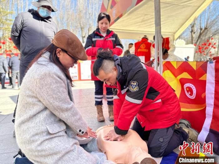 圖為志愿者正在為民眾現(xiàn)場(chǎng)演示急救演練。澤塔雍措 攝