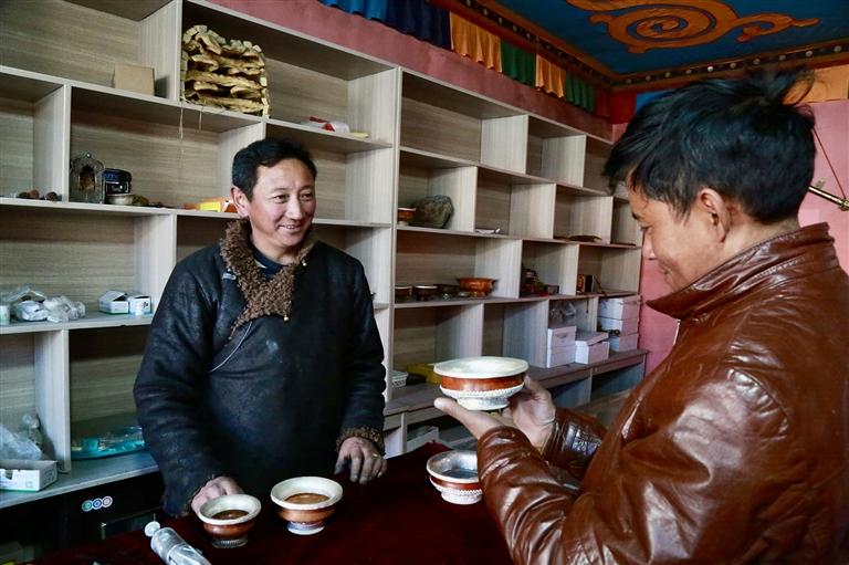 43歲的次央多吉是墨竹工卡縣級非物質(zhì)文化遺產(chǎn)阿吉祖玉傳承人。這份傳承的使命,自他的祖輩起便已延續(xù)。在他的記憶中,長輩們熟練掌握這項(xiàng)非遺技藝的身影,深深烙印在他的心中。“阿吉祖玉是祖先傳下來的東西,不能丟?!北е@樣堅(jiān)定的想法,次央多吉在年少時(shí)便立下決心,要將這門技藝傳承下去,并不斷發(fā)揚(yáng)光大。