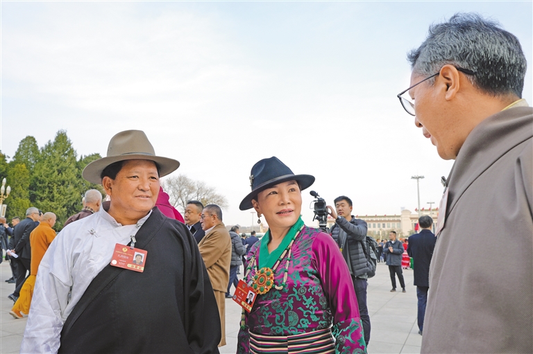陽(yáng)春布德澤,萬(wàn)物生光輝。3月4日,出席全國(guó)政協(xié)十四屆三次會(huì)議的26名住藏全國(guó)政協(xié)委員,肩負(fù)著全區(qū)各族各界群眾的期盼與重托,與來(lái)自34個(gè)界別的2100多名全國(guó)政協(xié)委員齊聚一堂,共襄盛舉。
