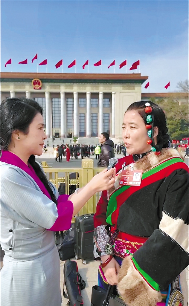 黨的光輝照邊疆,邊疆人民心向黨?!?024年,我們縣迎來兩件大喜事,一是縣人民醫(yī)院新院址投入使用,院區(qū)整潔、漂亮,醫(yī)院技術裝備也更新升級,進一步實現(xiàn)了家門口‘能看病’到‘看好病’的飛躍;二是縣第二中學竣工,現(xiàn)代化的新校舍進一步實現(xiàn)了‘辦好牧民家門口的優(yōu)質學校的目標’。這次全國兩會上,我會把這些好消息分享給其他代表委員,讓他們知道在黨的堅強領導下,西藏確確實實富起來、好起來了?!逼涞录拥亟榻B說。